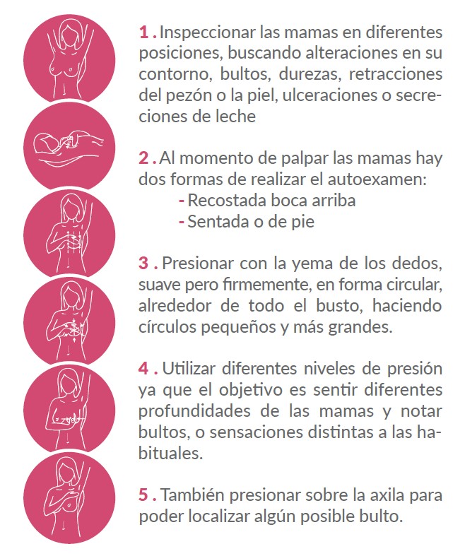 Se sugiere: En la mujer joven, entre 20 y 35 años, se indica un autoexamen mensual (postmenstrual) y por el médico, cada vez que concurre a un control.